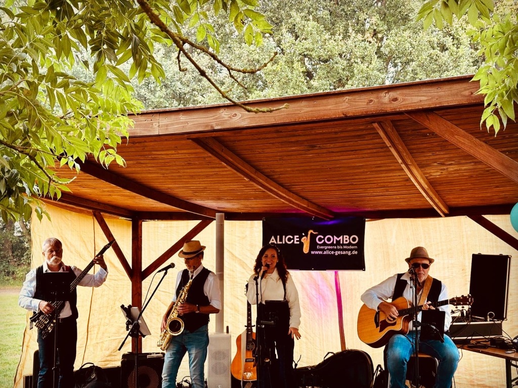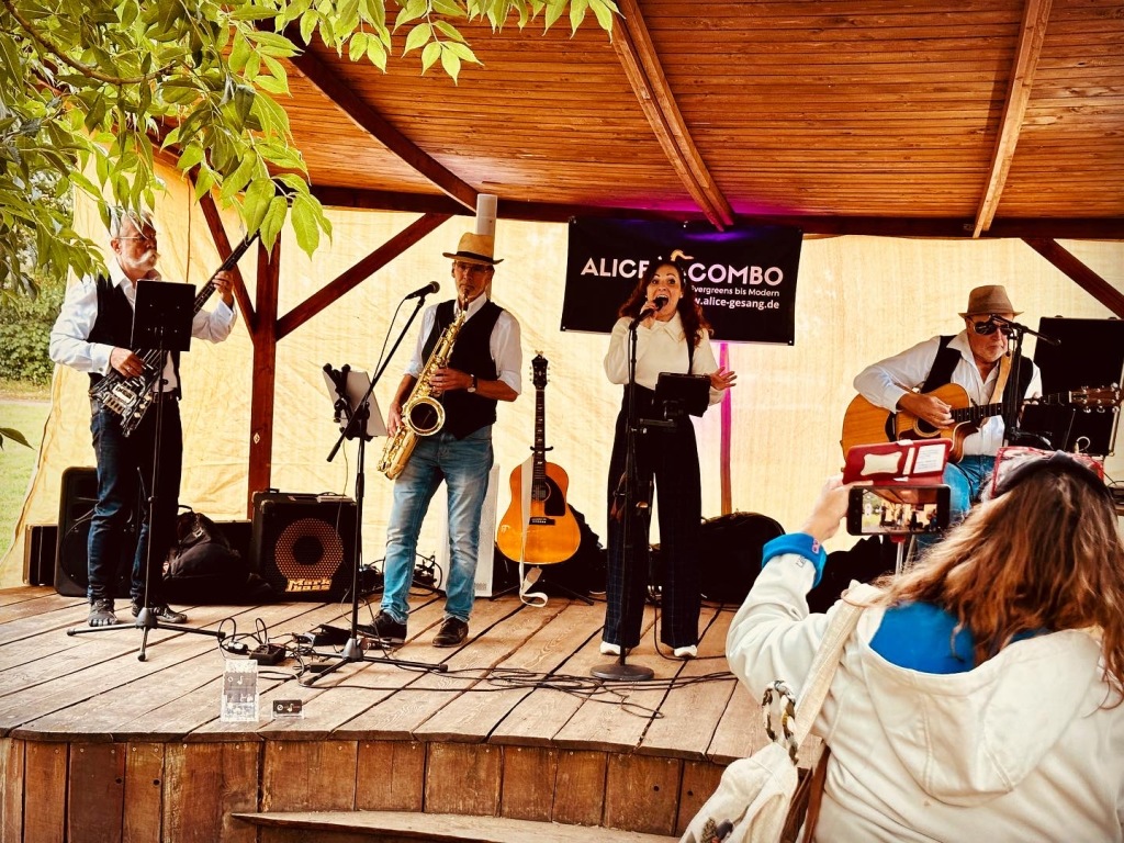 Am Freitag, 28.Juni 2024 könnt ihr uns in Rahlstedt von 19.30-21.00Uhr hören. Euch erwartet eine bunte Mischung aus Evergreens bis Modern. Mit Andreas Wolf am Saxophon, Jürgen Wolf an der Gitarre, Frank Willer am Bass und Alice Fiur singt für euch. Eintritt 10€